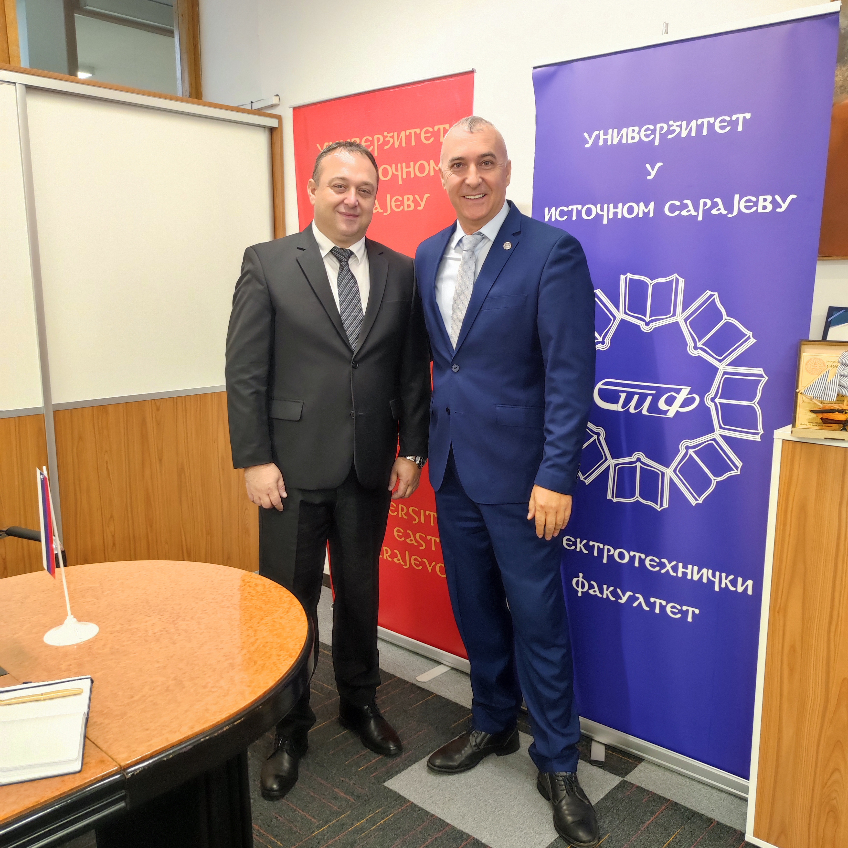 Dana 7. 10. 2025. godine na Elektrotehničkom fakultetu Sveučilišta u Istočnom Sarajevu održan je sastanak ravnatelja Instituta za standardizaciju BiH gospodina Aleksandra Todorovića i dekana Elektroteničkog fakulteta prof. dr. Božidara Popovića. Na sastanku se razgovaralo o aktivnijem uključivanju predstavnika akademske zajednice i industrije u rad tehničkih komiteta Instituta, te o primjeni novih alata utemeljenih na umjetnoj inteligenciji usmjerenih ka digitalnoj transformaciji procesa standardizacije.