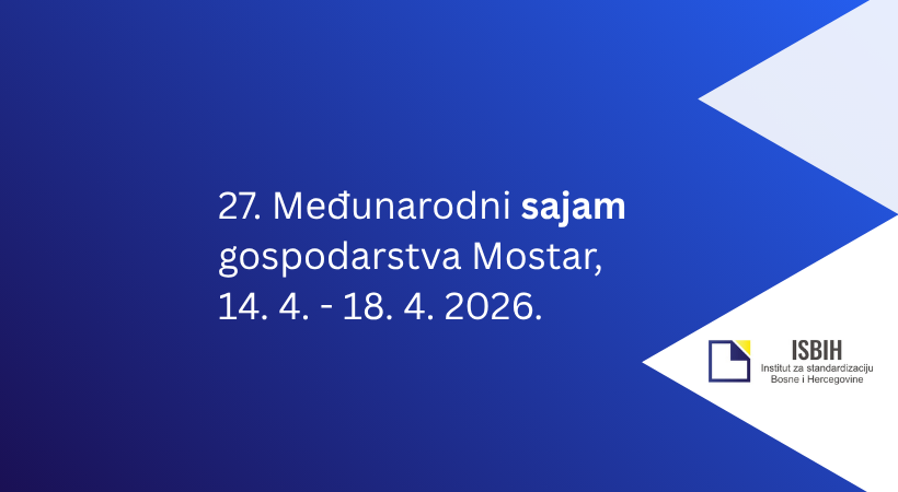 U skladu s članom 7. Pravila za konsultacije u izradi pravnih propisa („Službeni glasnik BiH”, broj 5/17), Institut za standardizaciju Bosne i Hercegovine je postavio navedeni dokument na web-aplikaciju eKonsultacije. Pozivamo sve zainteresovane strane da u periodu od 9. februara 2023. godine do 24. februara 2023. godine učestvuju u javnim konsultacijama te da nam putem web-aplikacije eKonsultacije dostave svoje prijedloge i primjedbe.